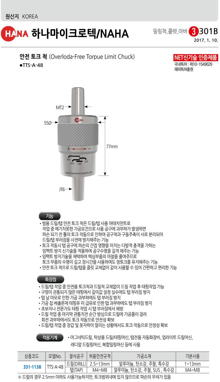 [Çϳª¸¶ÀÌÅ©·ÎÅØ] ¹ü¿ë ¾ÈÀüÅäÅ© µå¸±Ã´/ÅÂÇÎô(TTS-A-48, µå¸±:2.5~13mm/ÅÇ:M4~M8, µå¸±Ã´/ÅÇÇÎô)(¸¶±×³×ƽµå¸±/Ź»ó¿ëµå¸±/ÅÇÇθӽŠ»ç¿ë°¡´É, ¾îÅÂÄ¡¸ÕÆ®)