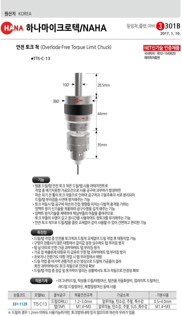 [Çϳª¸¶ÀÌÅ©·ÎÅØ] ¹ü¿ë ¾ÈÀüÅäÅ© µå¸±Ã´/ÅÂÇÎô(TTS-C-13, µå¸±:1.2~3.0mm/ÅÇ:M1.4~M3, µå¸±Ã´/ÅÇÇÎô)(¸¶±×³×ƽµå¸±/Ź»ó¿ëµå¸±/ÅÇÇθӽŠ»ç¿ë°¡´É, ¾îÅÂÄ¡¸ÕÆ®)