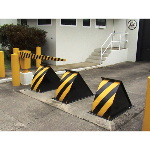 The TT224 Hydraulic or Pneumatic Barricade System is a 24 inch (610 mm) high raise wedge(s). Crash rated, these barricades are lowered to allow passage of authorized vehicles. |