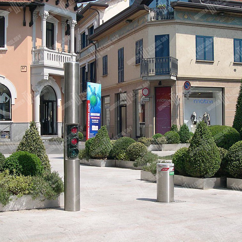 Cilinder: steel mode FE37 painted anthracite Cilinder Height: 600 mm. Cilinder Diameter 275 mm. Cilinder Thickness: 6 Moving Speed: 10 cm./s. Manual neutral pulling: yes Safety pressure switch: yes Connection line to SP station: 10 mt. Hydraulic pump: yes Housing frame: yes Counter-frame to be walled in: yes Category Retractable Bollard - Retractable Bollards
