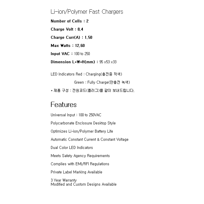 JBL910A-0800(8.4V 1.5Ah)(Li-ion,Polymer Charger)