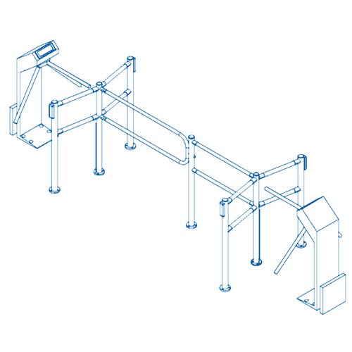 We manufacture railing systems that match and easily integrate with all our entrance products, be they turnstiles or wicket gates. More than 30 types of elements and standard modules enable to form passageways of any required configuration.