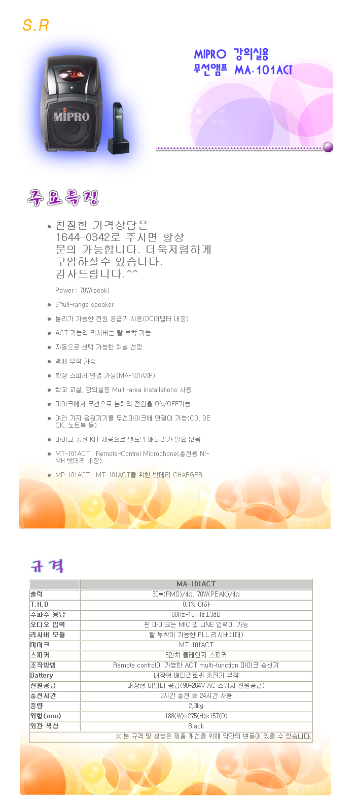 [ÀÎÅÍ¿¥] MIPRO °­ÀÇ½Ç¿ë ¹«¼±¾ÚÇÁ MA-101ACT