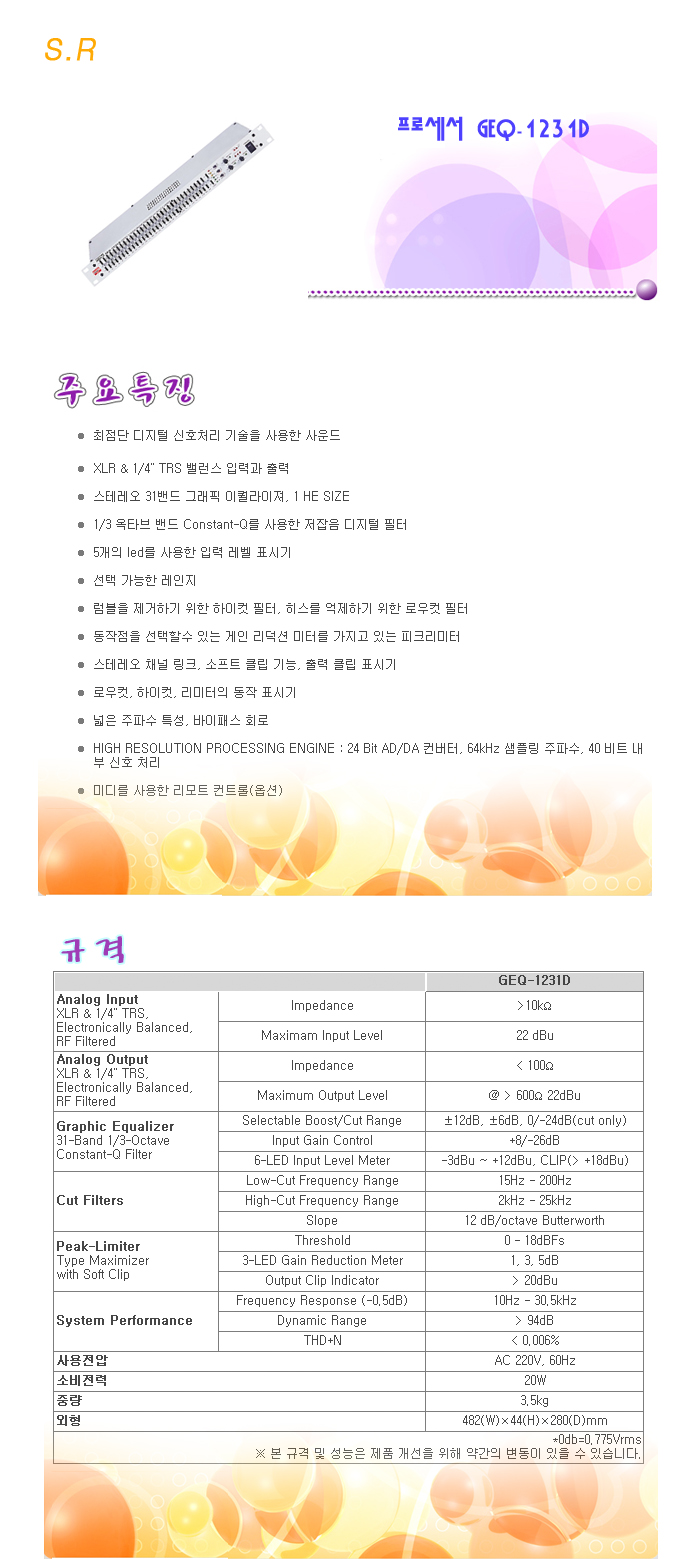 [ÀÎÅÍ¿¥] S.R ÇÁ·Î¼¼¼­ GEQ-1231D