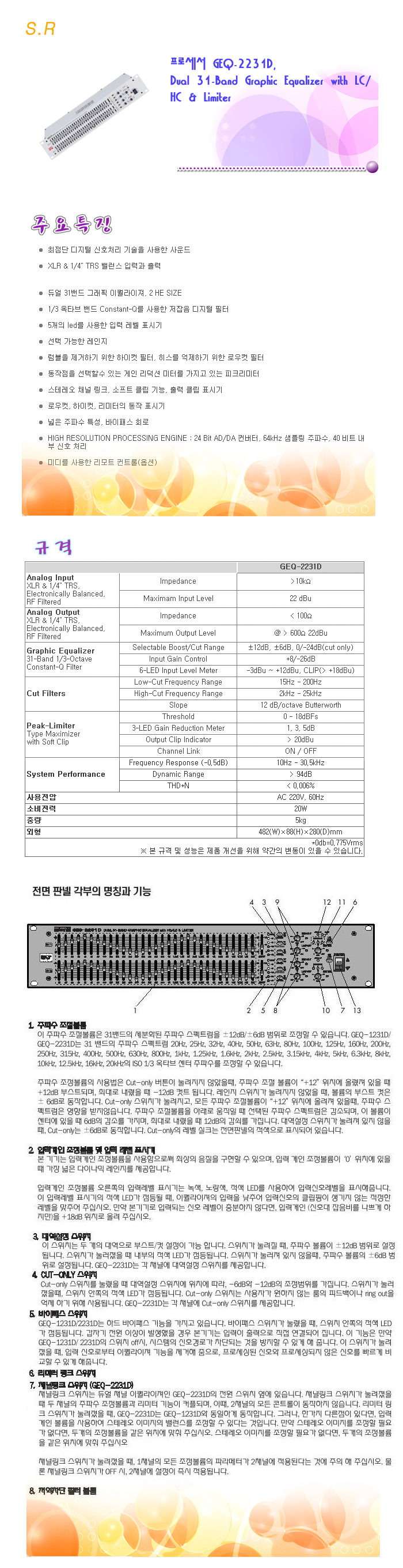 [ÀÎÅÍ¿¥] S.R ÇÁ·Î¼¼¼­ GEQ-2231D,Dual 31-Band Graphic Equalizer with LC/HC & Limiter