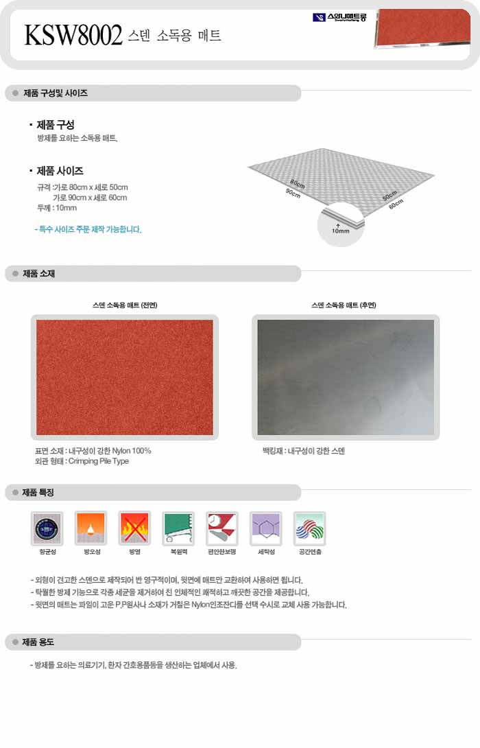 [½º¿Í´Ï]½ºÅÙ¼Òµ¶¿ë ¸ÅÆ®(KSW8002, Àû»ö, 500mmx800mm)