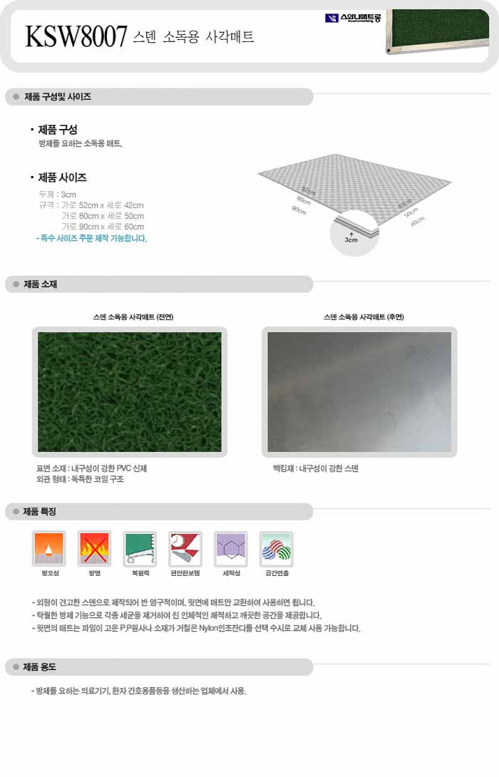 [½º¿Í´Ï] ½ºÅÙ ¼Òµ¶¿ë »ç°¢ ¸ÅÆ®(KSW8007, 420mmx520mm)