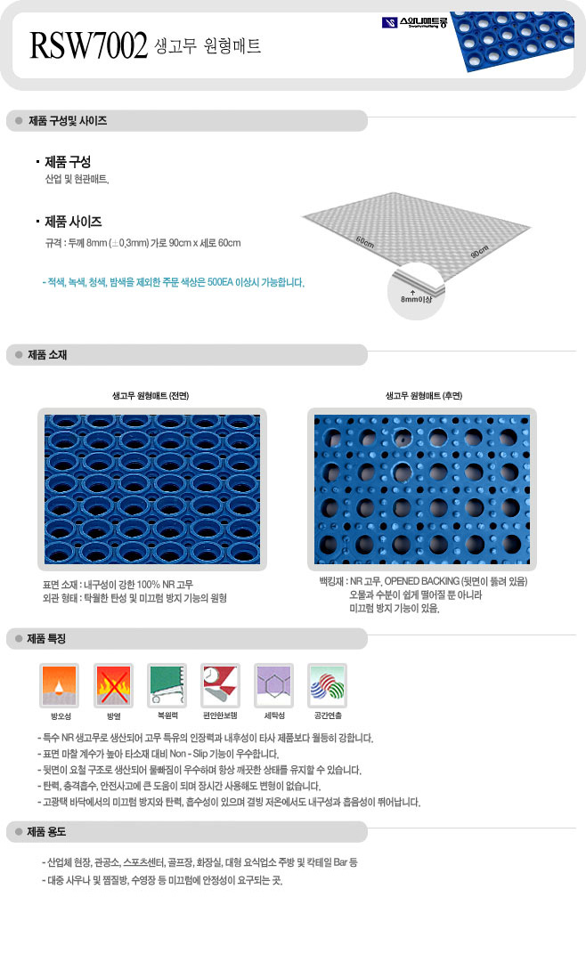 [½º¿Í´Ï] û»ö »ý°í¹«¿øÇü ¸ÅÆ®(RSW7002, µÎ²²8mm 900x600mm)-Á¦Ç°´ÜÁ¾,ǰÀý!