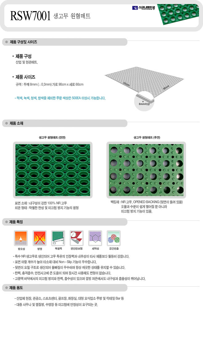 [½º¿Í´Ï] ³ì»ö/°ËÁ¤»ö »ý°í¹«¿øÇü ¸ÅÆ®(RSW7001, µÎ²²8mm 900x600mm)