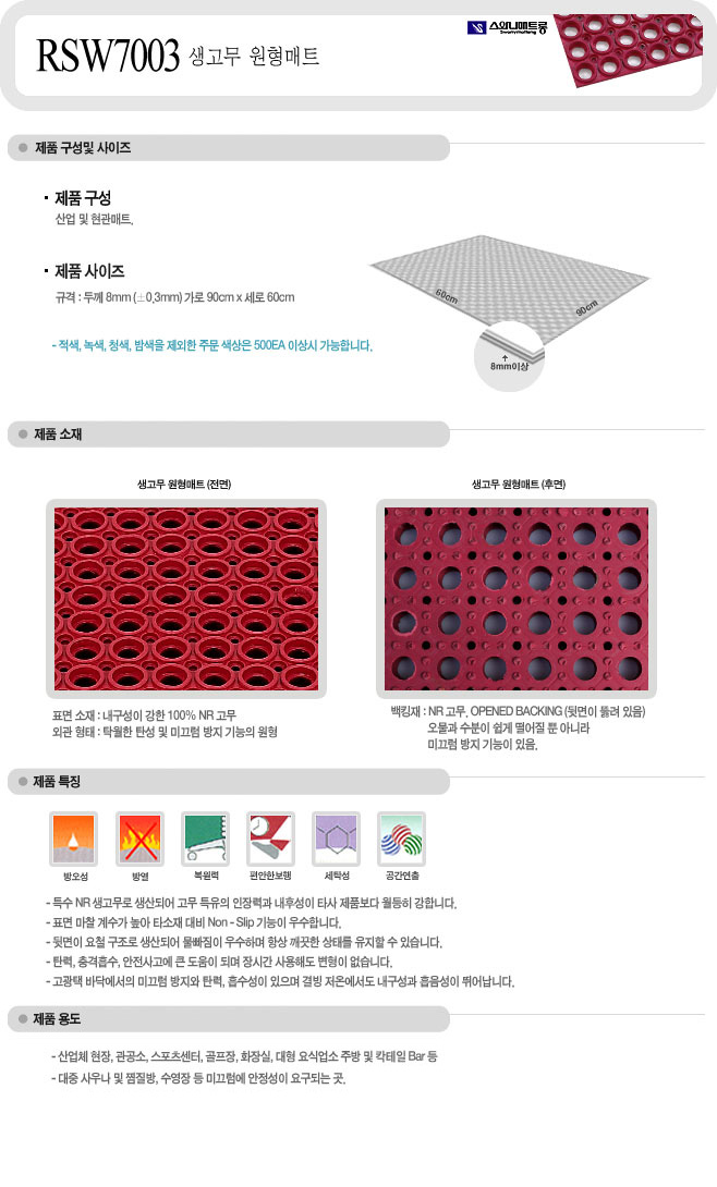 [½º¿Í´Ï] Àû»ö »ý°í¹«¿øÇü ¸ÅÆ®(RSW7003, µÎ²²8mm 900x600mm)-Á¦Ç°´ÜÁ¾,ǰÀý!