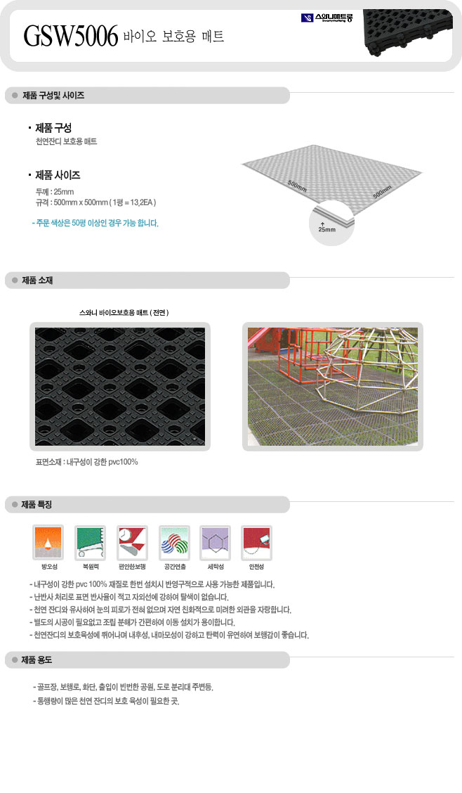 [½º¿Í´Ï] ¹ÙÀÌ¿À º¸È£¿ë ¸ÅÆ®(GSW5006, µÎ²²25mm x Å©±â500x500mm)(°ßÀû¿äû)