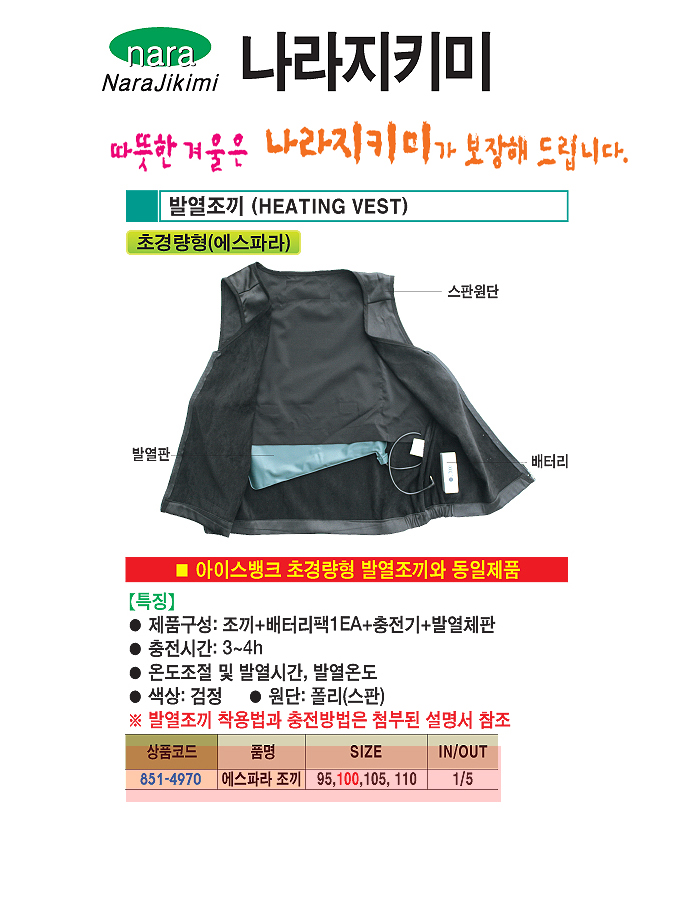 [³ª¶óÁöÅ´ÀÌ]¹ß¿­Á¶³¢/¿¡½ºÆÄ¶óÁ¶³¢(Heating Vest)