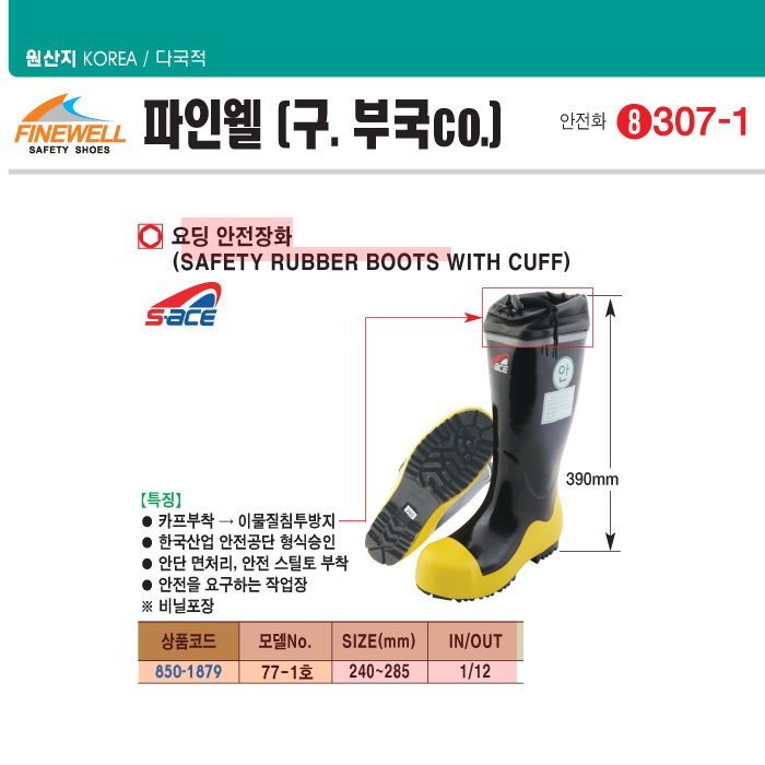 [ÆÄÀÎÀ£/ºÎ±¹] ¿äÆÃ¾ÈÀüÀåÈ­(77-1È£)(Safety Rubber Boots with Cuff):´ÜÁ¾!!