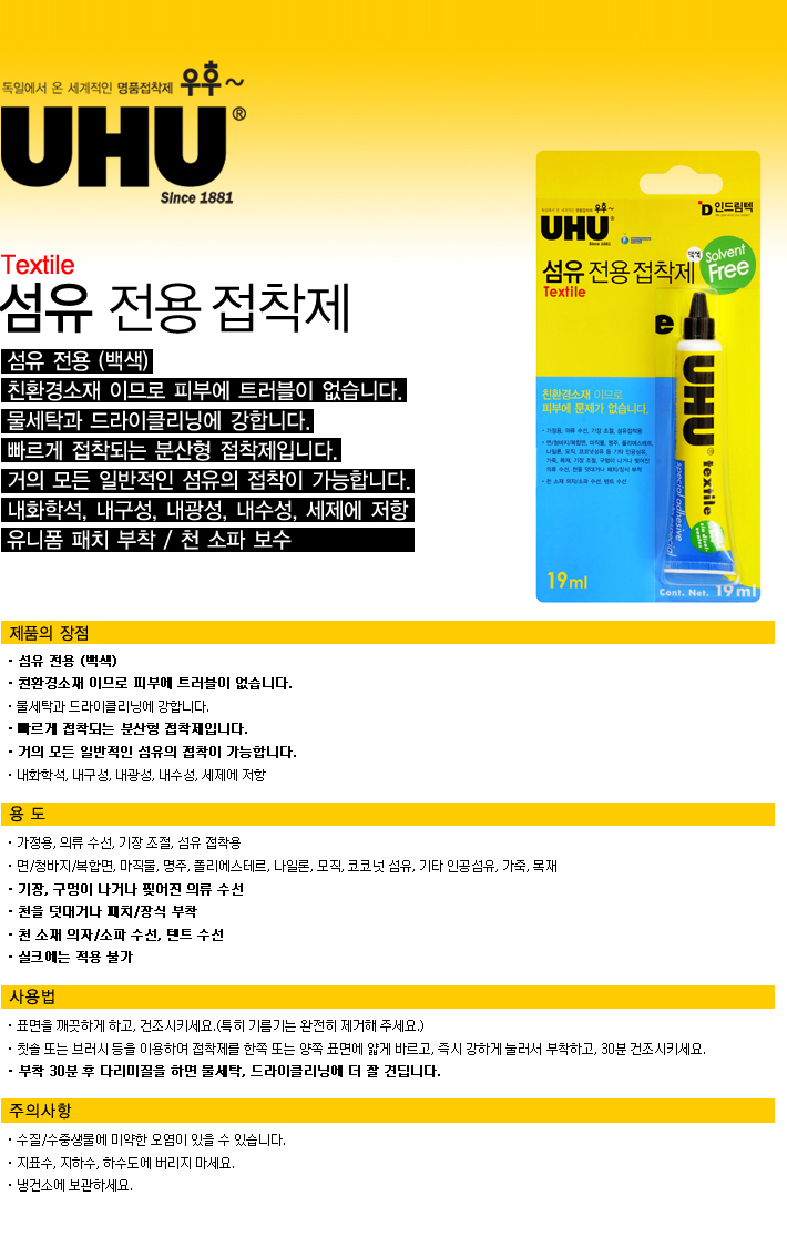 [UHU] UHU/¿ìÈÄ ¼¶À¯ Àü¿ë Á¢ÂøÁ¦ º»µå(19ml, ¹é»ö, ÀÇ·ù¼ö¼±/±âÀåÁ¶Àý/¸é/û¹ÙÁö/º¹ÇÕ¸é/¸¶Á÷¹°/¸íÁÖ/Æú¸®¿¡½ºÅ׸£/³ªÀÏ·Ð/¸ðÁ÷)=>Á¦Ç°´ÜÁ¾!