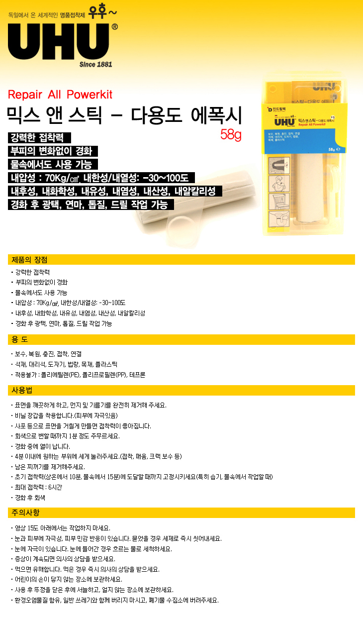 [UHU] UHU/¿ìÈÄ ¹Í½º¾Ø½ºÆ½ ´Ù¿ëµµ ¿¡Æø½Ã(58g, ³»»ê¼º/³»¾ËÄ®¸®¼º/³»¼ö¼º/ÈÖ¹ßÀ¯/¼Öº¥Æ® ÀúÇ×·Â/³»Áøµ¿¼º/Àü±âÀý¿¬¼º Á¢ÂøÁ¦ º»µå)