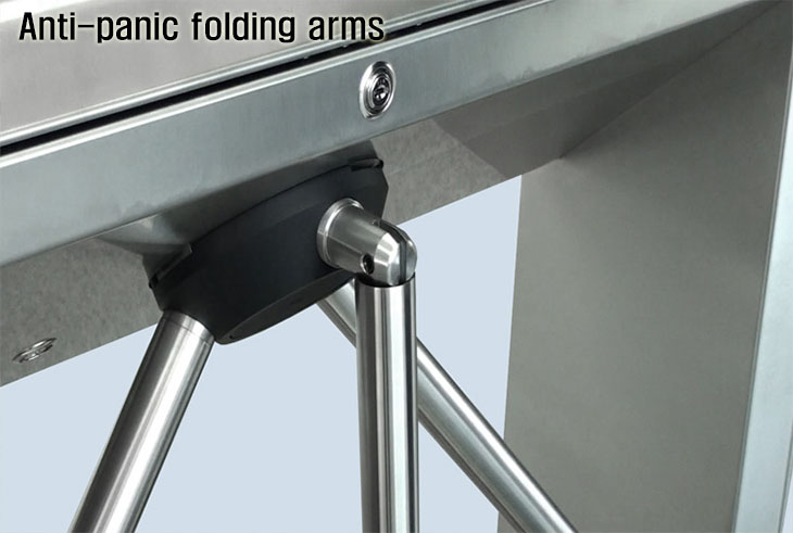 The turnstiles are operated from the remote control panel and can be easily integrated into most access control systems. After each passage the barrier arms are automatically returned to home position. Smoothness of reset is ensured by the damper. The arm rotation sensors track passages through the turnstile to ensure accurate count inputs to access control systems for reports generation.