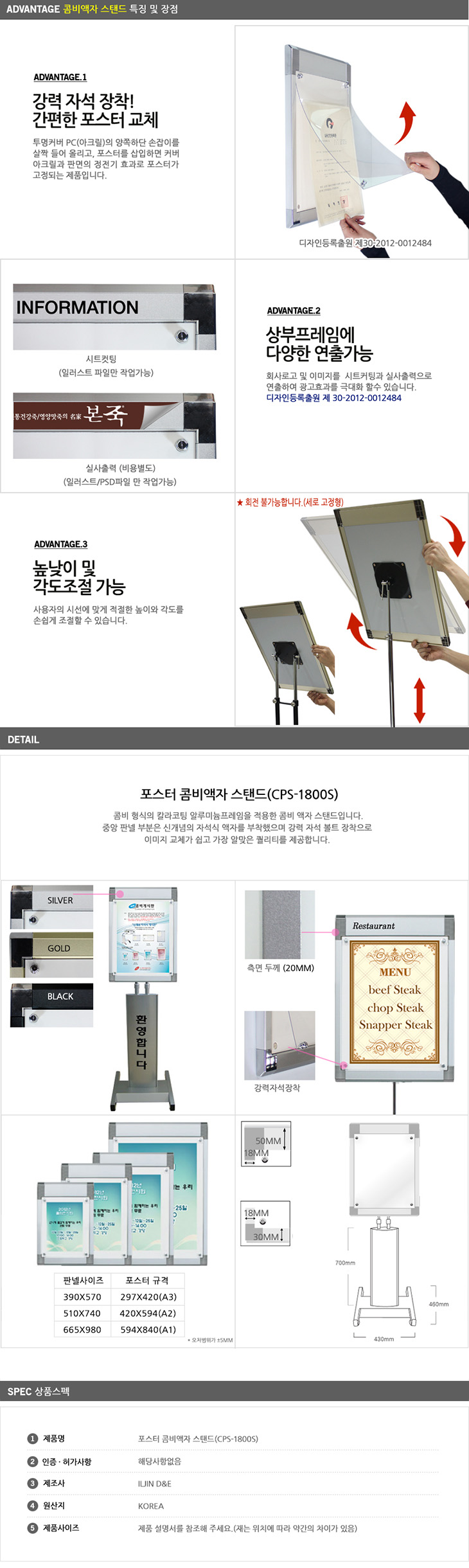 [ÀÏÁø] Àü½Ã¿ë Æ÷½ºÅÍ ÄÞºñ ¾×ÀÚ ½ºÅĵå(CPS-1800S, ½Ç¹öºÐüµµÀå, »çÀÌÁî A3/A2/A1¿ë ¼±Åð¡´É)