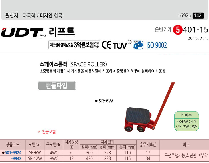 [UDT] ½ºÆäÀ̽º·Ñ·¯ °î¼±ÁÖÇà°¡´É ÇÚµéŸÀÔ(SR-12W 8WQ 12Åæ, ¼¿ÇÁÀ̵¿, ±â±¸/°ø±¸/Áß·®¹° À̵¿/±â°èÀ̵¿±â±¸/´ëÇü±â°èÀ̵¿)(Space Roller)(ÁÖ¹®Àü Àç°íÈ®ÀÎ)
