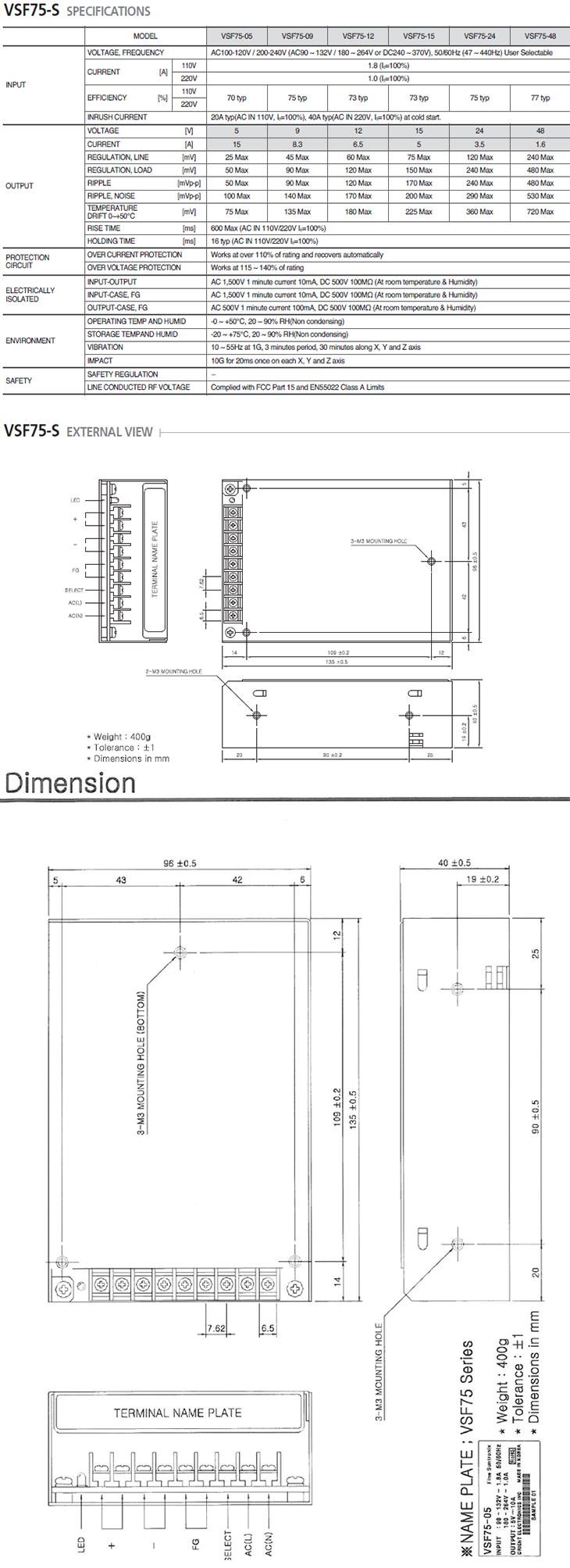 VSF75-05 5V 15.0A