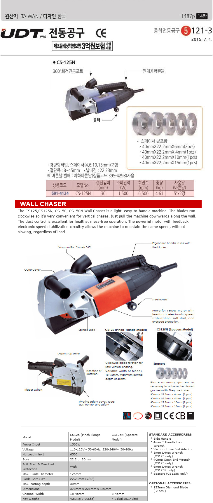 [UDT] ÄÜÅ©¸®Æ®È¨ÆÄ±â/ȨÆÄ±âÄ¿ÅÍ(CS-180, Àý´Ü±íÀÌ:15~54mm, 1800Watt, 4100RPM, 7.7Kg)(Wall Chaser)