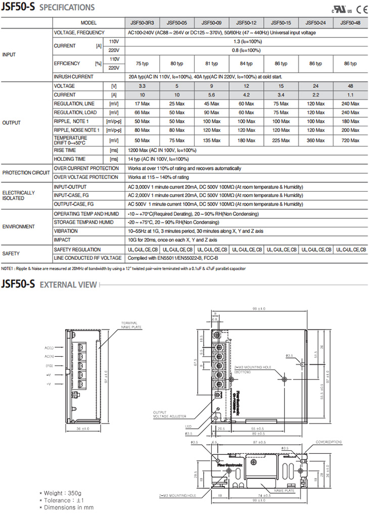 [¿À¸®¿£Æ®ÀüÀÚ] Àü¿ø°ø±ÞÀåÄ¡/ÆÄ¿ö¼­ÇöóÀÌ(JSF50-3R3/JSF50-05/JSF50-09/JSF50-12/JSF50-15/JSF50-24/JSF50-48,50Watt)