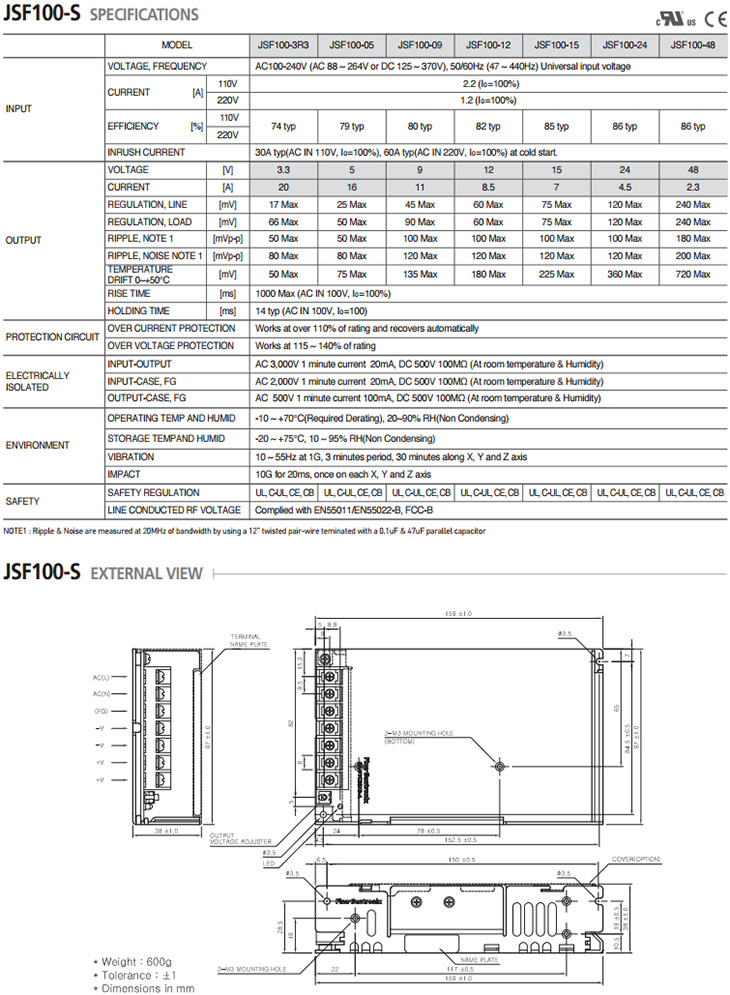 [¿À¸®¿£Æ®ÀüÀÚ] Àü¿ø°ø±ÞÀåÄ¡/ÆÄ¿ö¼­ÇöóÀÌ(JSF100-3R3/JSF100-05/JSF100-09/JSF100-12/JSF100-15/JSF100-24/JSF100-48,100Wat