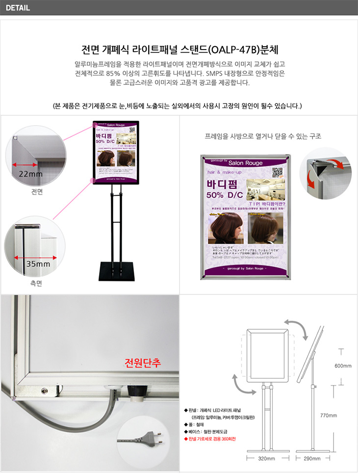 [ÀÏÁø] Àü¸é °³Æó½Ä ¶óÀÌÆ®ÆÐ³Î ½ºÅĵå(OALP-47B, °ËÁ¤ ºÐüµµÀå, A4/B4/A3/B3 ¼±Åð¡´É, °£ÆíÇÑ Æ÷½ºÅÍ ±³Ã¼ °Ô½ÃÆÇ, ¿øÅÍÄ¡ ȸÀü)