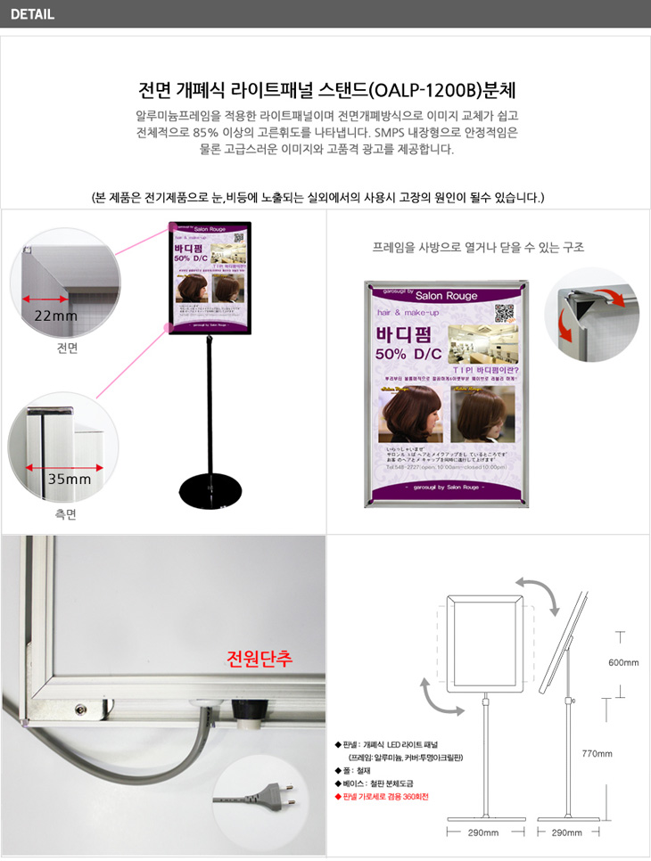 [ÀÏÁø] Àü¸é °³Æó½Ä ¶óÀÌÆ®ÆÐ³Î ½ºÅĵå(OALP-1200B, °ËÁ¤ ºÐüµµÀå, A4/B4/A3 ¼±Åð¡´É, °£ÆíÇÑ Æ÷½ºÅÍ ±³Ã¼ °Ô½ÃÆÇ, ¿øÅÍÄ¡ ȸÀü)