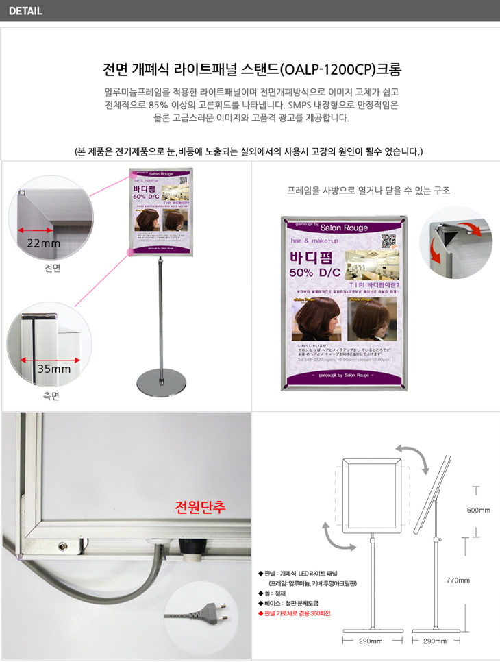 [ÀÏÁø] Àü¸é °³Æó½Ä ¶óÀÌÆ®ÆÐ³Î ½ºÅĵå(OALP-1200CP, Å©·Ò/½Ç¹ö, A4/B4/A3 ¼±Åð¡´É, °£ÆíÇÑ Æ÷½ºÅÍ ±³Ã¼ °Ô½ÃÆÇ, ¿øÅÍÄ¡ ȸÀü)