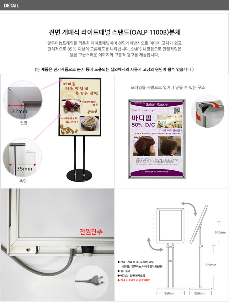 [ÀÏÁø] Àü¸é °³Æó½Ä ¶óÀÌÆ®ÆÐ³Î ½ºÅĵå(OALP-1100B, °ËÁ¤ ºÐüµµÀå, A3/B3/A2/A1 ¼±Åð¡´É, °£ÆíÇÑ Æ÷½ºÅÍ ±³Ã¼ °Ô½ÃÆÇ, ¿øÅÍÄ¡ ȸÀü)