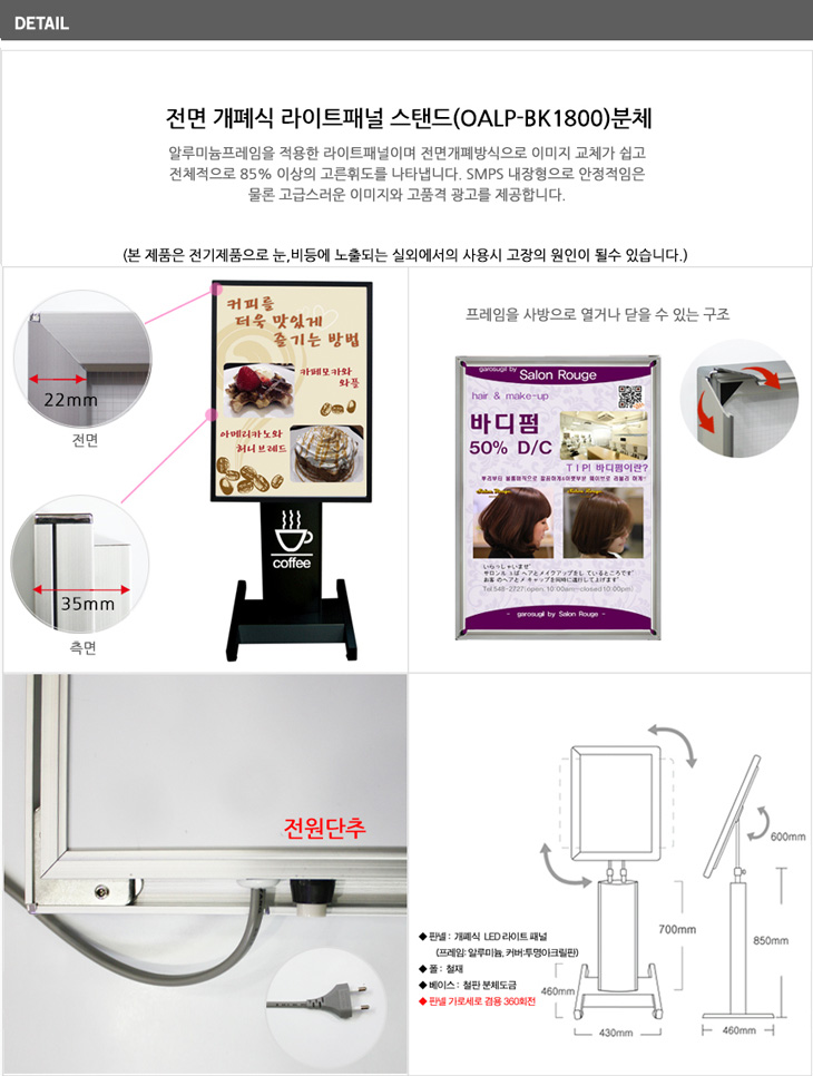 [ÀÏÁø] Àü¸é °³Æó½Ä ¶óÀÌÆ®ÆÐ³Î ½ºÅĵå(OALP-BK1800, °ËÁ¤ ºÐüµµÀå, A3/B3/A2/B2/A1 ¼±Åð¡´É, °£ÆíÇÑ Æ÷½ºÅÍ ±³Ã¼ °Ô½ÃÆÇ, ¿øÅÍÄ¡ ȸÀü)