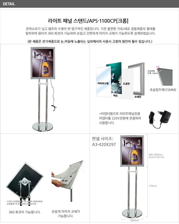 [ÀÏÁø] ¶óÀÌÆ® ÆÐ³Î ½ºÅĵå ÀÔ°£ÆÇ °Ô½ÃÆÇ(APS-1100CP, Å©·Òµµ±Ý, A3»çÀÌÁî:297x420mm, 220V ¾î´ðÅÍ Æ÷ÇÔ)