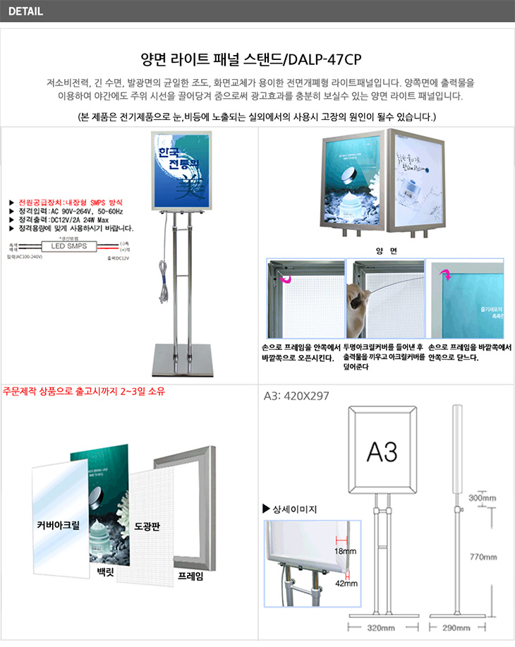 [ÀÏÁø] ¾ç¸é LED ¶óÀÌÆ® ÆÐ³Î ½ºÅĵå/¾ç¸é Á¶¸í ½ºÅÄµå °Ô½ÃÆÇ(DALP-47CP, A3¿ë:297x420mm)