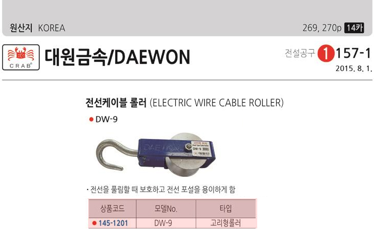 [´ë¿ø±Ý¼Ó] Àü¼±ÄÉÀÌºí ·Ñ·¯/Àü¼± Ç®¸µ ·Ñ·¯(DW-9, °í¸®Çü ·Î¶ó/ÈÄÅ©Çü ·Ñ·¯)(ELectric Wire Cable Roller)