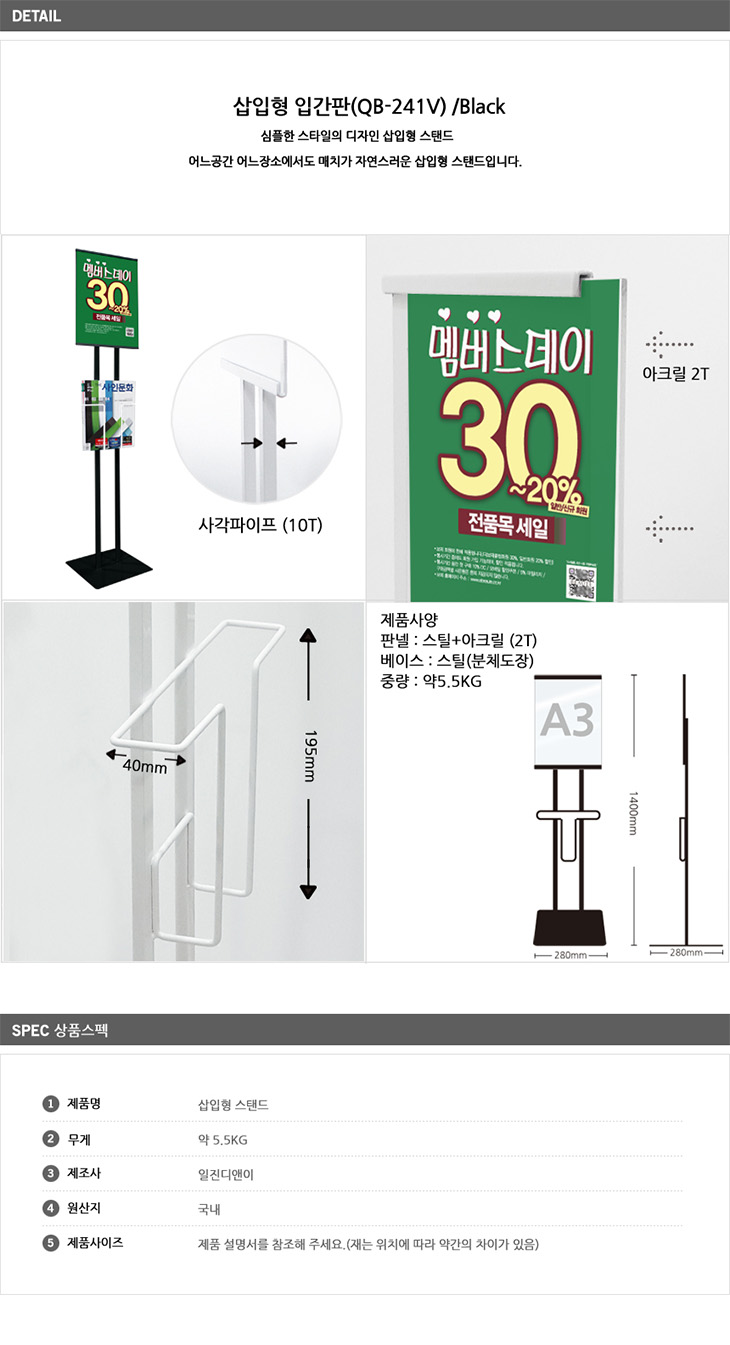 [ÀÏÁø] »ðÀÔÇü½ºÅĵå(QB-241V Black, A3 ¼¼·ÎÇü, Æ÷½ºÅÍ »ðÀÔÇü ½ºÅĵå ÀÔ°£ÆÇ/°Ô½ÃÆÇ/¾È³»´ë/¾È³»ÆÇ/Àü½Ã¿ë Æ÷½ºÅÍ, īŻ·Î±× ½ºÅĵå)=>Á¦Ç°´ÜÁ¾!