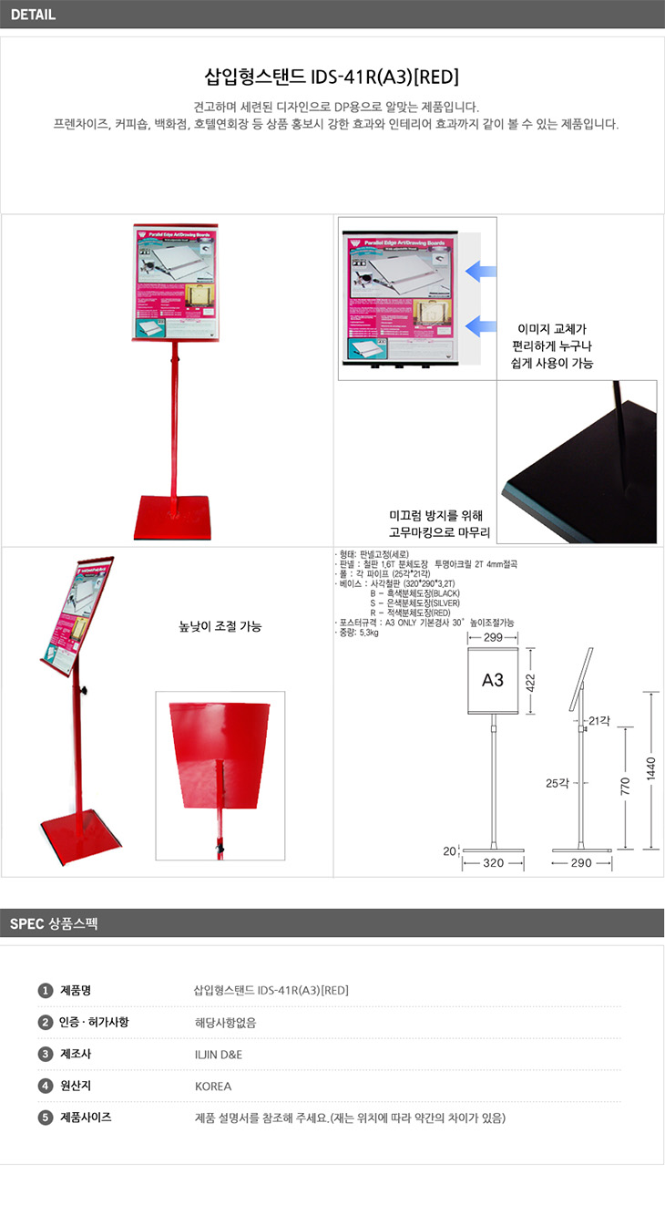 [ÀÏÁø] »ðÀÔÇü½ºÅĵå(IDS-41R Red, A3 Æ÷½ºÅÍ »ðÀÔÇü ½ºÅĵå ÀÔ°£ÆÇ/°Ô½ÃÆÇ/¾È³»´ë/¾È³»ÆÇ/Àü½Ã¿ë/»óǰȫº¸ Æ÷½ºÅÍ)