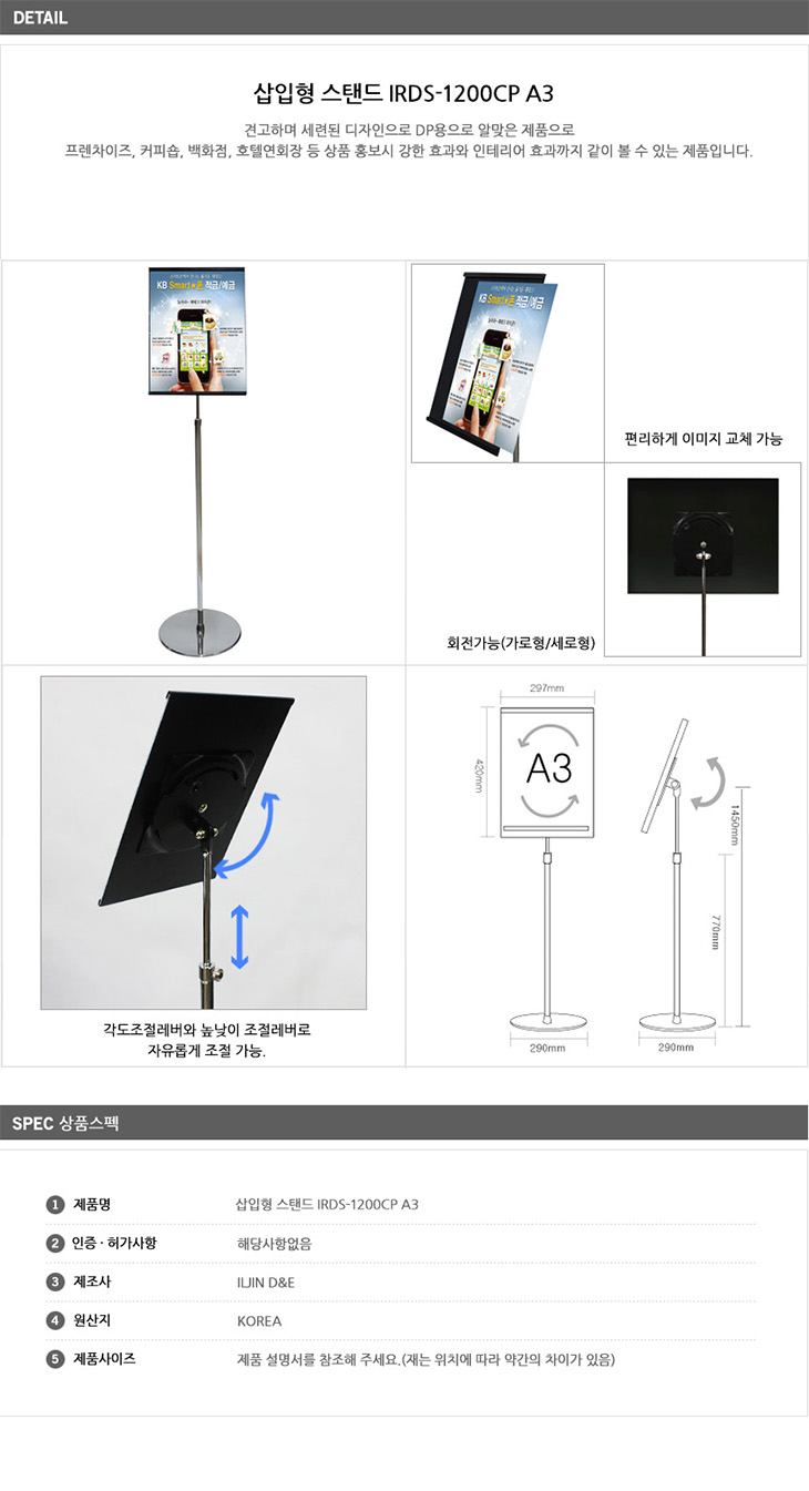 [ÀÏÁø] »ðÀÔÇü ½ºÅĵå(IRDS-1200CPA3, Å©·Òµµ±Ý °¡·Î¼¼·Î Àüȯ ȸÀüÇü, A3 Æ÷½ºÅÍ »ðÀÔÇü ½ºÅĵå ÀÔ°£ÆÇ/°Ô½ÃÆÇ/¾È³»´ë/¾È³»ÆÇ/Àü½Ã¿ë Æ÷½ºÅÍ)