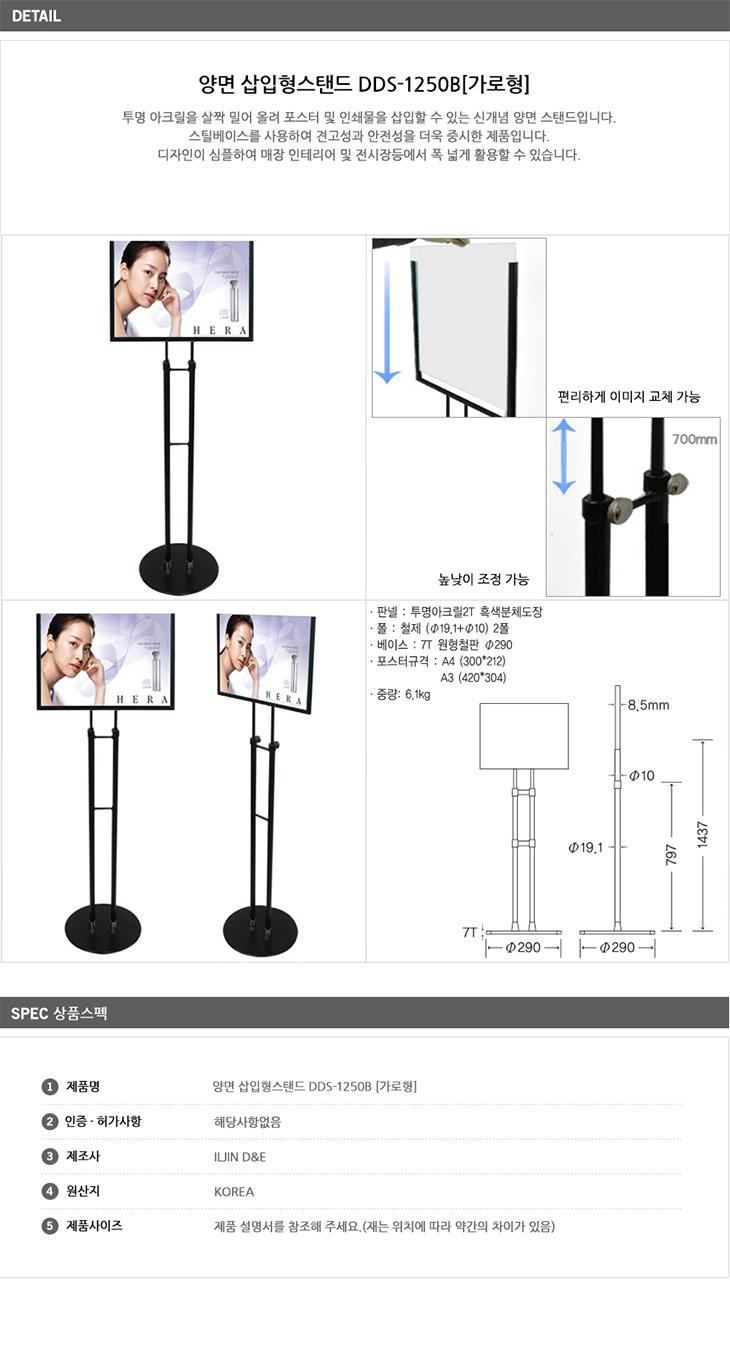 [ÀÏÁø] ¾ç¸é½ºÅĵå(DDS-1250B °¡·ÎÇü, A4/A3 ¼±Åð¡´É Æ÷½ºÅÍ »ðÀÔÇü ½ºÅĵå ÀÔ°£ÆÇ/°Ô½ÃÆÇ/¾È³»´ë/¾È³»ÆÇ/Àü½Ã¿ë Æ÷½ºÅÍ)