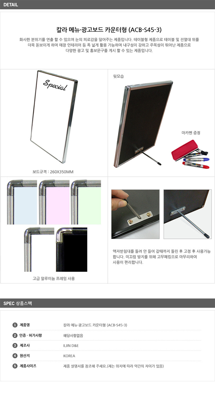 [ÀÏÁø] Ä®¶ó ¸Þ´º¡¤±¤°íº¸µå Ä«¿îÅÍÇü(ACB-S45-3, 260x350mm, ¸¶Ä«Ææ Æ÷ÇÔ, Å×À̺í/Áø¿­´ë¿ë POP)