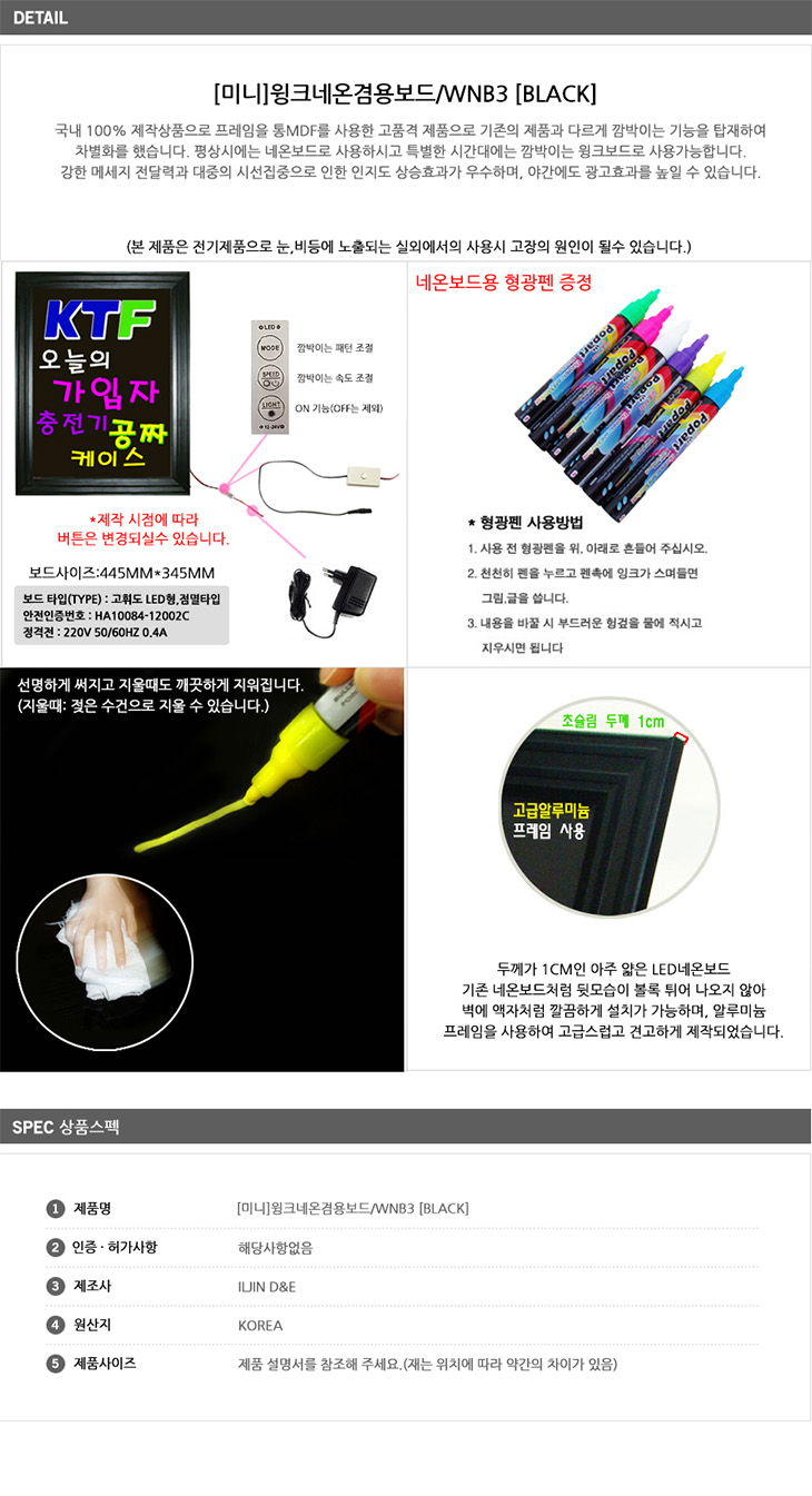 [ÀÏÁø] ¹Ì´Ï À®Å© ³×¿Â°â¿ë º¸µå(WNB3-B Black, Á¶¸í, 345x445mm, ¾Æ´äÅÍ/³×¿Âº¸µå Çü±¤Ææ Æ÷ÇÔ)