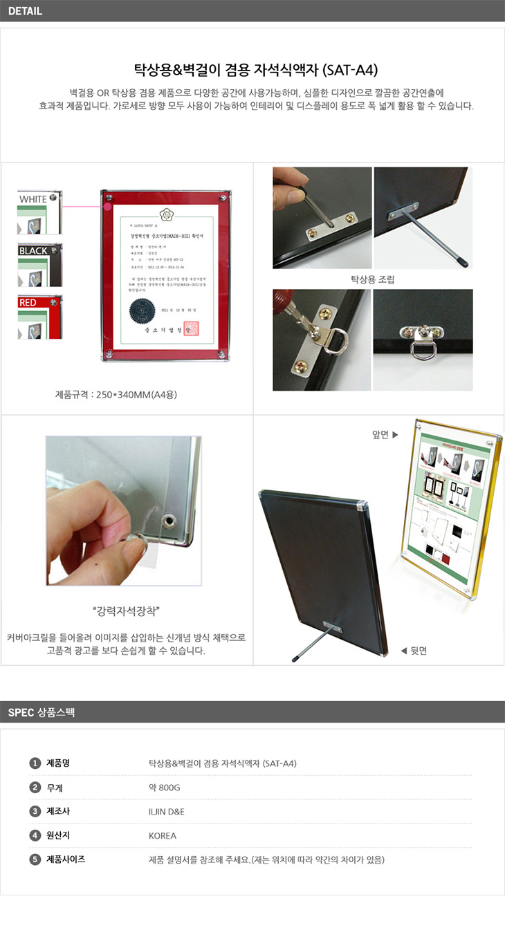 [ÀÏÁø] Ź»ó¿ë/º®°ÉÀÌ °â¿ë ÀÚ¼®½Ä ¾×ÀÚ(SAT-A4 Silver ÇÁ·¹ÀÓ, 250x340mm)