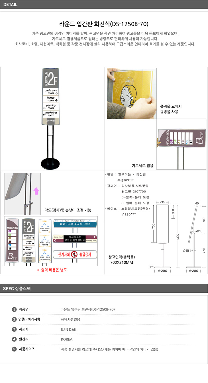 [ÀÏÁø] ¶ó¿îµå ÀÔ°£ÆÇ ȸÀü½Ä(DS-1250B-70, °¡·Î¼¼·Î°â¿ë, °ËÁ¤, ¾ç¸éÇü, È£ÅÚ/´ëÇü¸¶Æ®m/¹éÈ­Á¡/Àü½ÃÀå ¾È³», ±¤°í¸é:850x210mmm, ¾Ë·ç¹Ì´½+Åõ¸íPC)