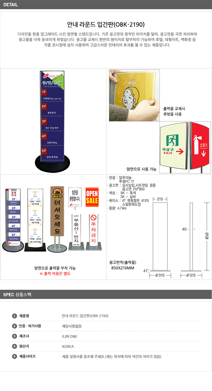 [ÀÏÁø] ¾È³» ¶ó¿îµå ÀÔ°£ÆÇ(OBK-2190, °ËÁ¤, ¾ç¸éÇü, È£ÅÚ/´ëÇü¸¶Æ®m/¹éÈ­Á¡/Àü½ÃÀå ¾È³», ±¤°í¸é:850x210mmm, ¾Ë·ç¹Ì´½+Åõ¸íPC)