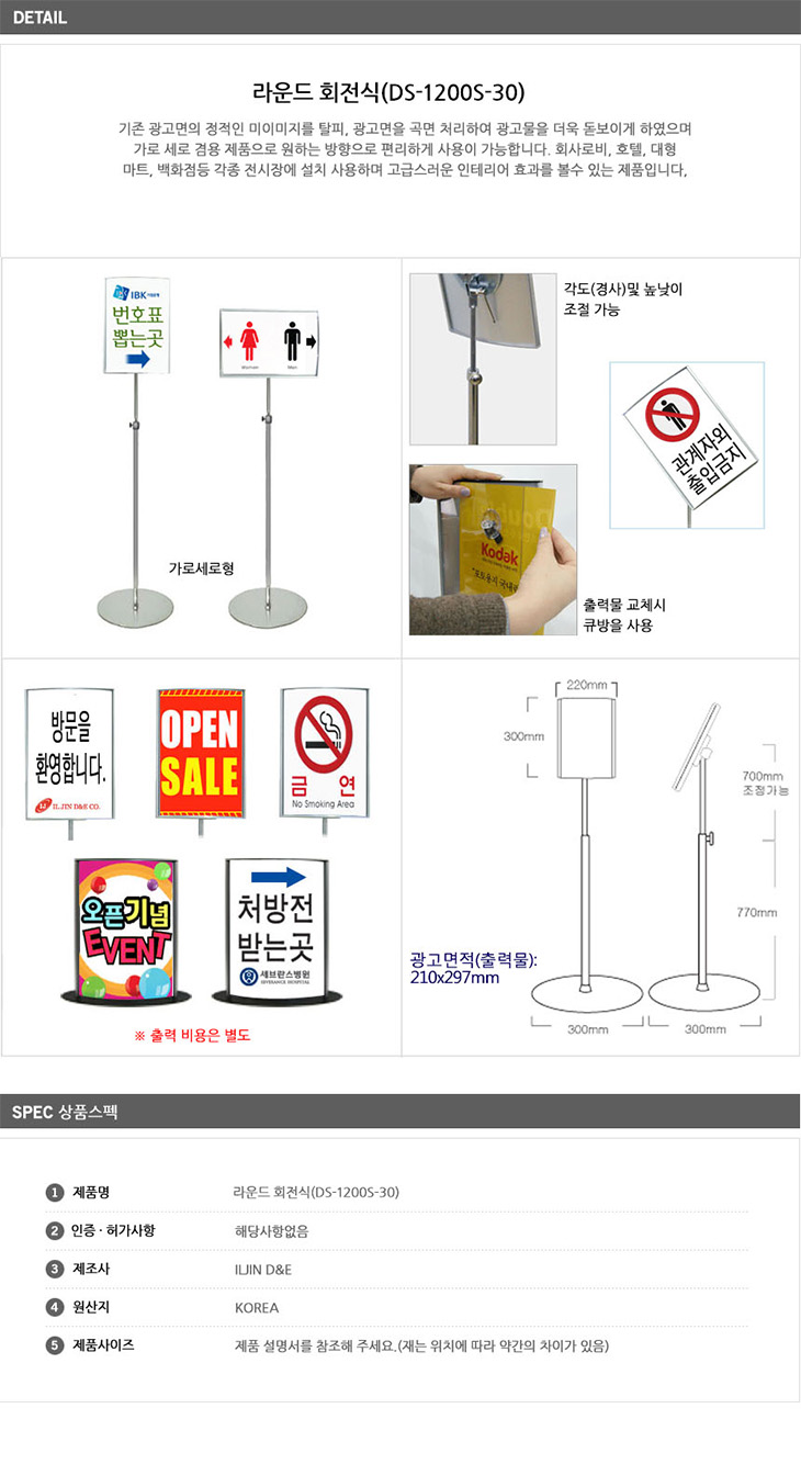 [ÀÏÁø] ¶ó¿îµå ȸÀü½Ä Àü½Ã¿ë Æ÷½ºÅÍ ½ºÅĵå(DS-1200S-30 ½Ç¹ö, ±¤°í¸é:A4, °¡·Î/¼¼·Î °â¿ë, ÀºÇà/ȸ»ç·Îºñ/È£ÅÚ/´ëÇü¸¶Æ®/¹éÈ­Á¡ µð½ºÇ÷¹ÀÌ¿ë °Ô½ÃÆÇ/¾È³»°£ÆÇ)