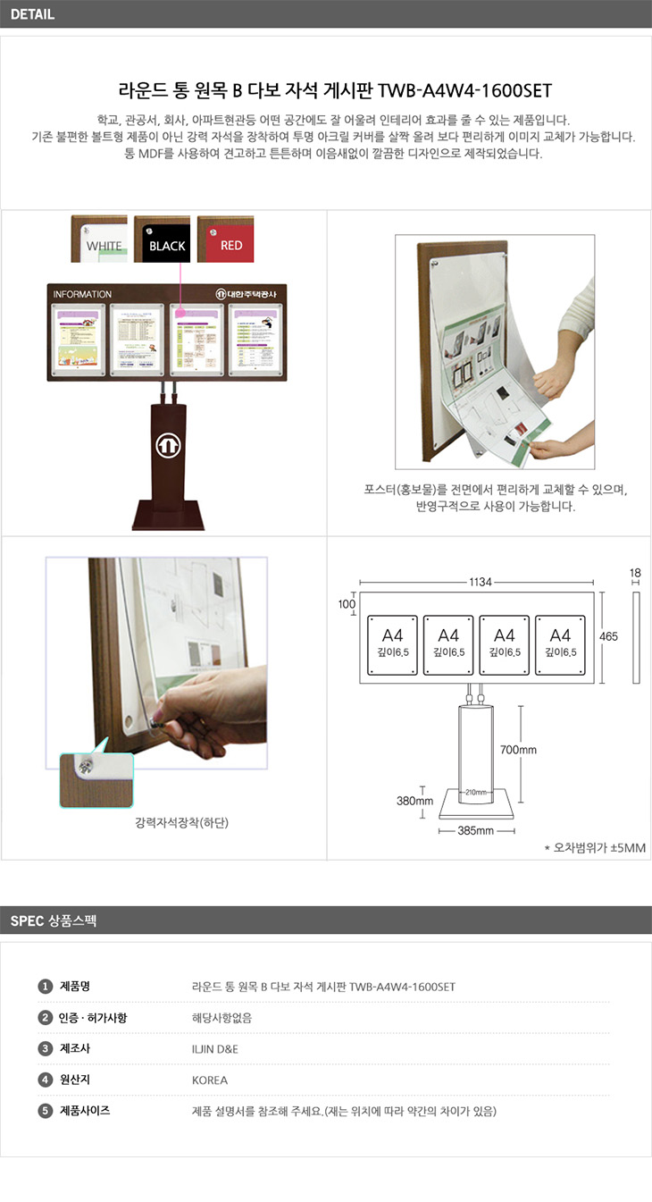 [ÀÏÁø] ¶ó¿îµå Åë ¿ø¸ñ B ´Ùº¸ ÀÚ¼® °Ô½ÃÆÇ(BBK-1600, A4 °¡·ÎÇü 4¸Å, Çб³/°ü°ø¼­/ȸ»ç/¾ÆÆÄÆ® Çö°ü °Ô½ÃÆÇ, ÀÚ¼® ºÎÂø½Ä, 1134x465mm, Àü½Ã¿ë Æ÷½ºÅÍ ½ºÅĵå