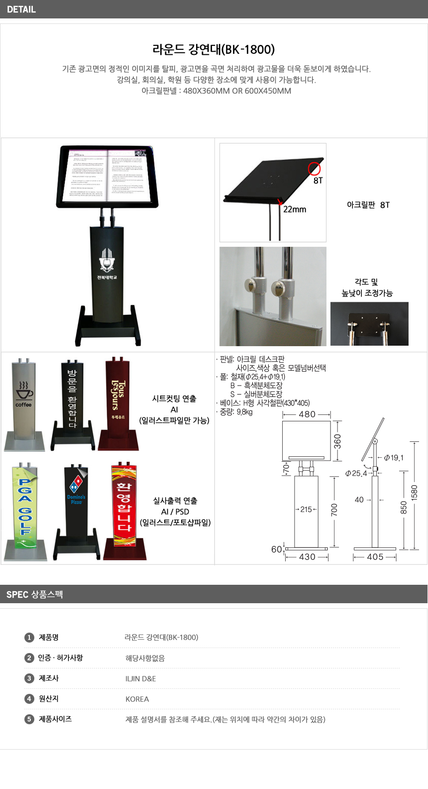 [ÀÏÁø] ¶ó¿îµå °­¿¬´ë(BK-1800, 480x360mm/600x450mm ¼±Åð¡´É, °­ÀǽÇ/ȸÀǽÇ/Çпø/Çб³ ³ôÀÌ Á¶Àý °­¿¬´ë)