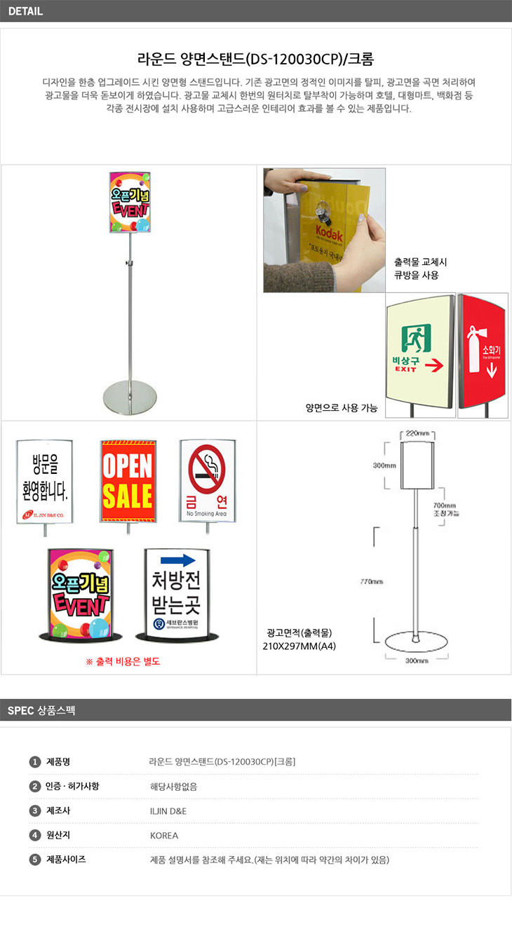 [ÀÏÁø] ¶ó¿îµå ¾ç¸é½ºÅĵå(DS-120030CP, Å©·Òµµ±Ý A4 Æ÷½ºÅÍ »ðÀÔÇü ½ºÅĵå ÀÔ°£ÆÇ/°Ô½ÃÆÇ/¾È³»´ë/¾È³»ÆÇ/Àü½Ã¿ë Æ÷½ºÅÍ)