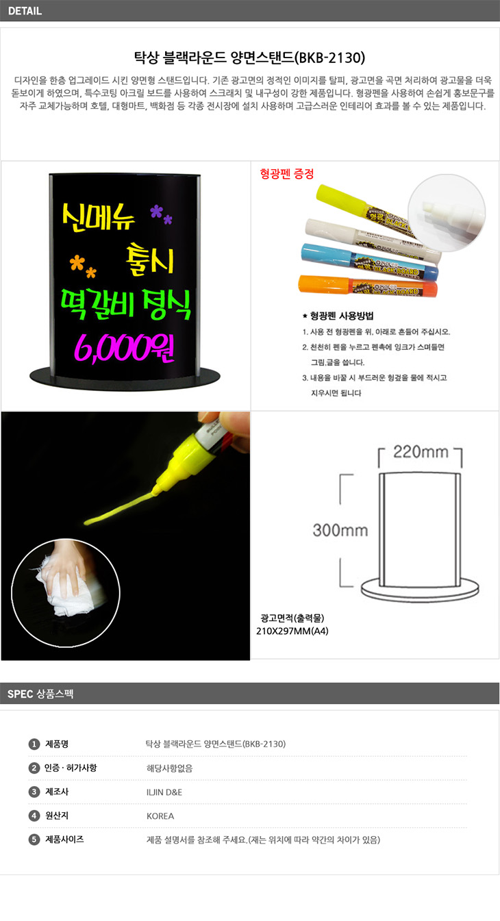 [ÀÏÁø] Ź»ó ºí·¢ ¶ó¿îµå ¾ç¸é½ºÅĵå(BKB-2130, 210x297mm, È£ÅÚ/´ëÇü¸¶Æ®/¹éÈ­Á¡ POP)