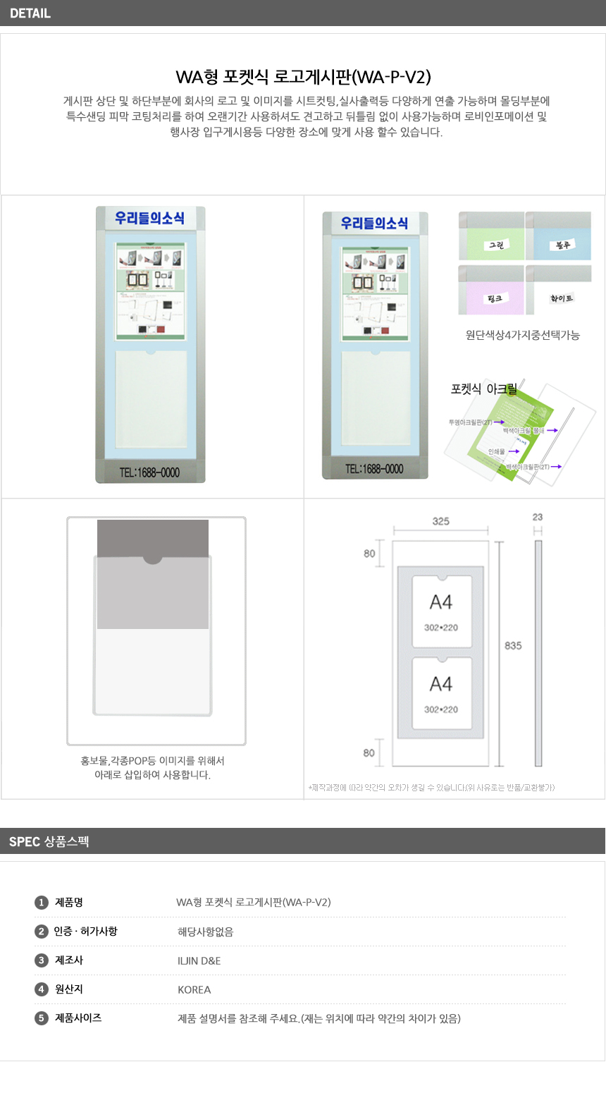 [ÀÏÁø] ¿¤¸®º£ÀÌÅÍ ¼³Ä¡ °Ô½ÃÆÇ/WAÇü Æ÷ÄÏ½Ä ·Î°í °Ô½ÃÆÇ(WA-P-V2, A4 2¸Å 325x835mm, ¼¼·ÎÇü, ·Îºñ ÀÎÆ÷¸ÞÀ̼Ç/Çà»çÀå ÀÔ±¸)