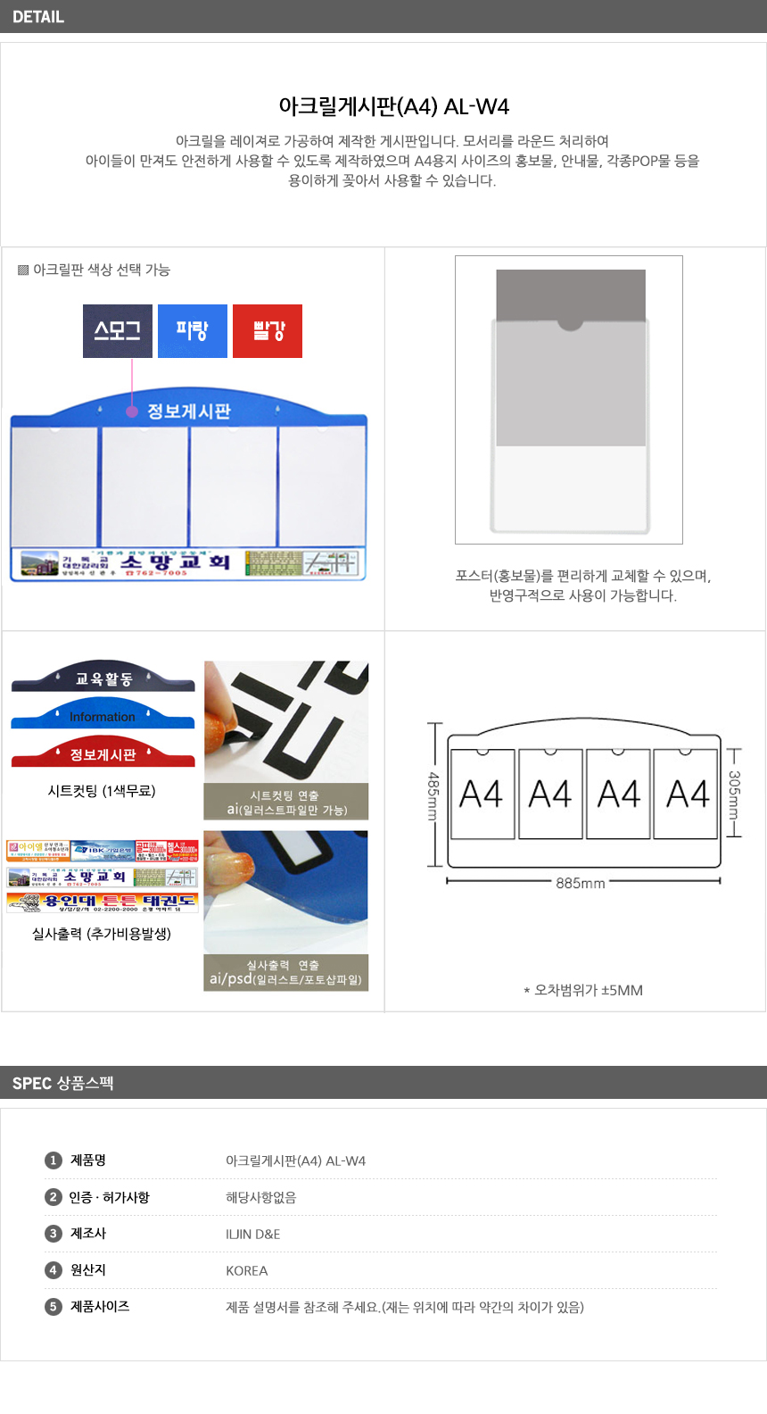 [ÀÏÁø] ¿¤¸®º£ÀÌÅÍ ¼³Ä¡ °Ô½ÃÆÇ/¾ÆÅ©¸± °Ô½ÃÆÇ(AL-W4, A4x4¸Å, 885x485mm, È«º¸¹°/¾È³»¹°/°¢Á¾POP °Ô½ÃÆÇ)=>Á¦Ç°´ÜÁ¾!
